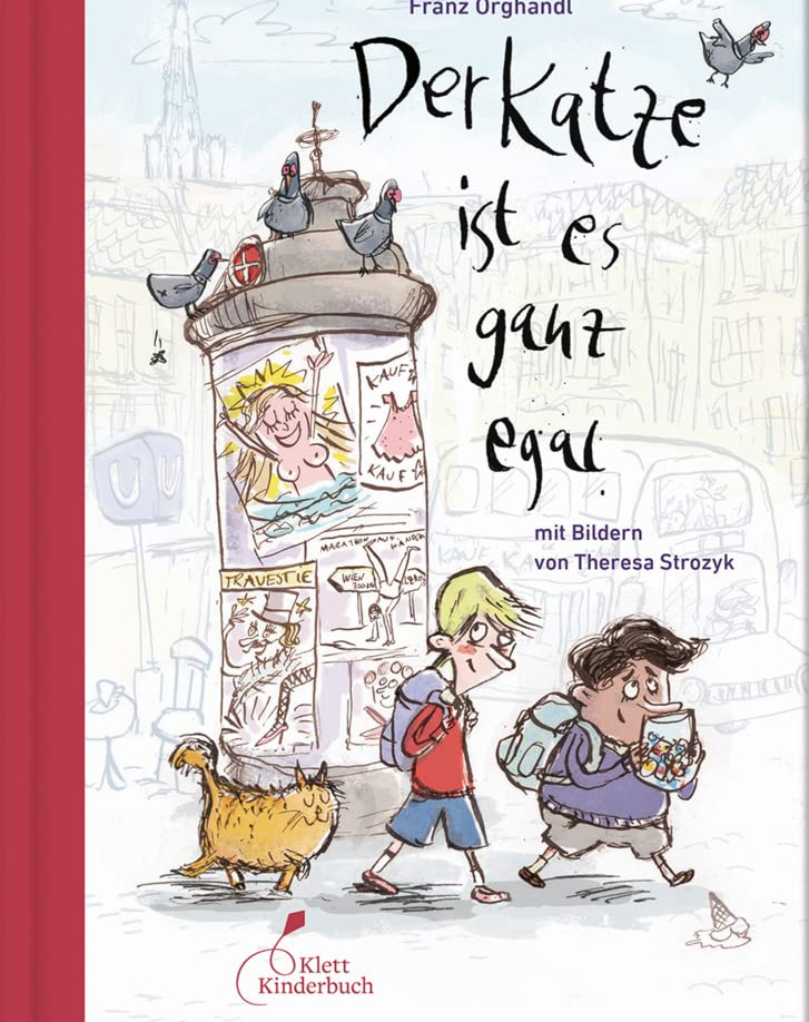 Franz Orghandl erzählt diese Geschichte ganz wunderbar leichtfüßig aus Kindersicht mit ganz viel Wiener Schmäh. Der Klett Kinderbuch Verlag hat die wienerischen Begriffe im Text stehen lassen, sie aber zum besseren Verständnis daneben ins Hochdeutsche übersetzt.